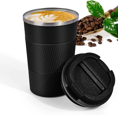 - ☕【Easy to Carry】The reusable travel mug with lid not only fits most cup holders, but is also easy to grab and carry. A small hole in the top of the lid allows you to conveniently enjoy your coffee with one hand.