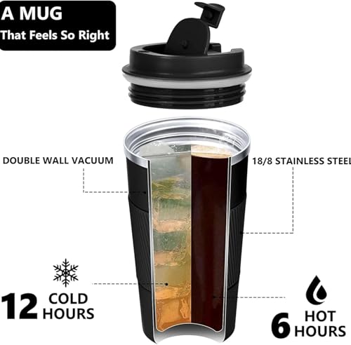- ☕【Stainless Steel Material】The travel coffee mug is designed with high-quality stainless steel and double-wall insulation to ensure that beverages can stay hot or cold over time, odorless, rust-proof, leak-proof, 6-hour heat preservation.