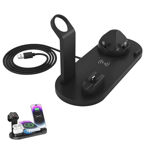 Aputue - حامل شحن مغناطيسي 4 في 1 من ابوتو، شاحن لاسلكي لجميع الأجهزة التي تدعم تقنية كيو اي، قاعدة شحن سريعة متوافقة مع سامسونج وآبل ومناسبة للعائلات والسفر