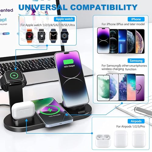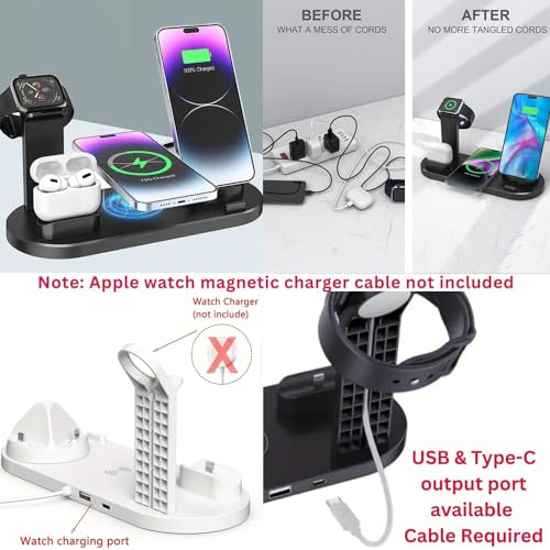 - ✅【محتويات العبوة】1 قاعدة شحن لاسلكي، 1 كابل طاقة USB نوع سي، 1 بطاقة تعليمات و1 دليل مستخدم، (ملاحظة: لا يحتوي على محول تيار متردد وشاحن اي ووتش)