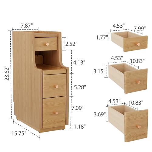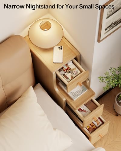 AQIMUELE - AQIMUELE Small Bedside Table, Narrow Bedside Cabinet with 3 Drawers, Slim Bedside Table for Bedroom, 20cm (Natural)