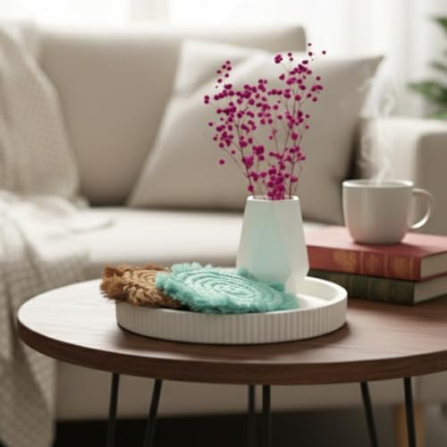 Generic - Aqua Harmony Set Decorative Tray with Vase and Macrame Coasters, White, Concrete, Geometric Pattern, 5 Pieces, 60x30x5 cm
