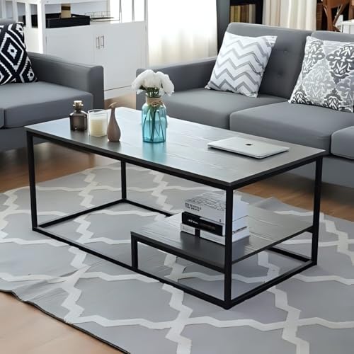 AR Corner - F066 Steel Center Table, 50 cm Length x 100 cm Width x 45 cm Height, Black/Grey