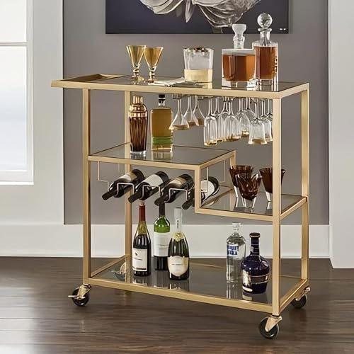 AR CORNER - Sama steel tea cart easy to move with dimensions 40cm * 80cm * height 80cm made of steel with gold electrostatic coating and shelves transparent glass
