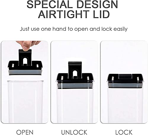 - Airtight to keep food dry and fresh - With a special sealing mechanism, you can safely open or close our plastic containers with two fingers. Simply flip the ring to open or flip the ring down to lock and seal.