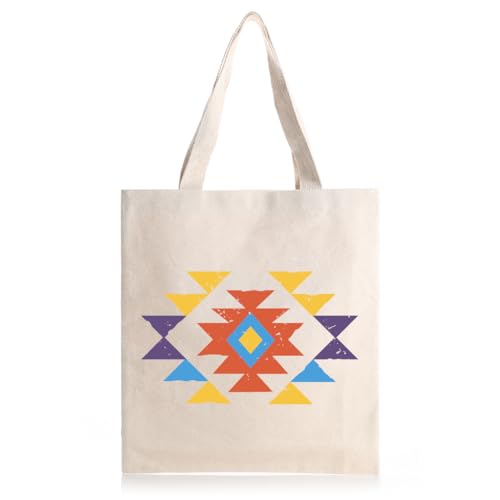 Generic - Arabian Pattern Tote Bag, Canvas Reusable Shopping Bag with Geometric Tribal Design