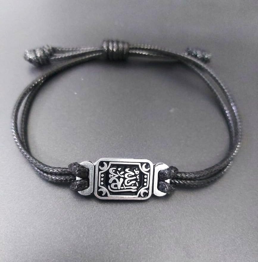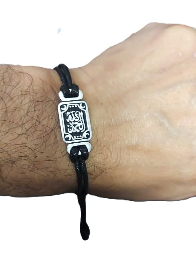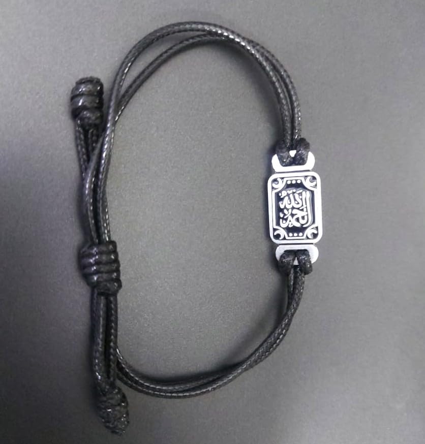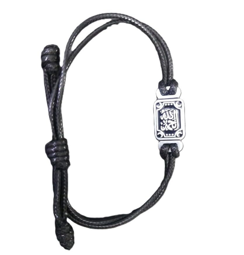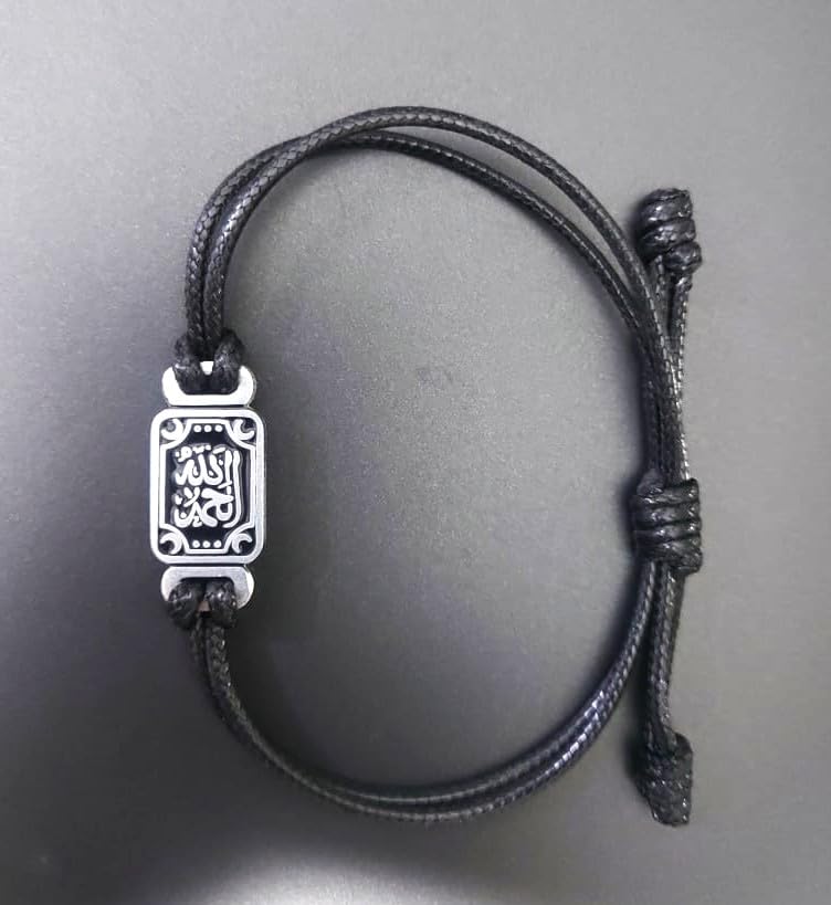 Generic - Arabic Calligraphy Adjustable Bracelet, Black Cord with Silver-Tone Charm, Islamic Design