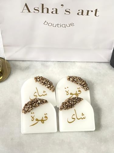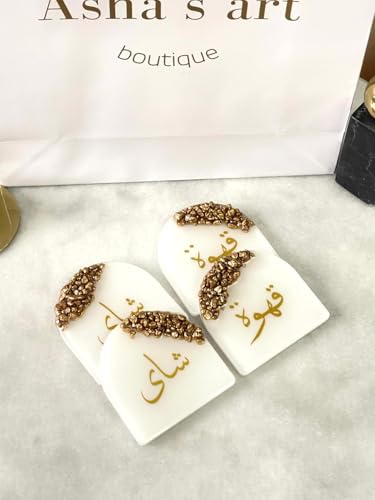 Generic - قاعدة أكواب من الراتنج بتصميم الخط العربي للشاي والقهوة