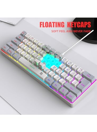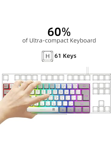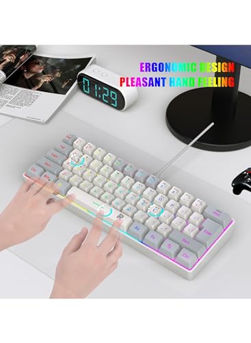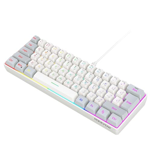 ROCK POW - Arabic English 60% Wired Gaming Keyboard, RGB Backlit Mini Keyboard, Waterproof Small Ultra-Compact 61 Keys for PC/Mac Gamer, Typist, Travel, Easy to Carry on Business Trip Grey