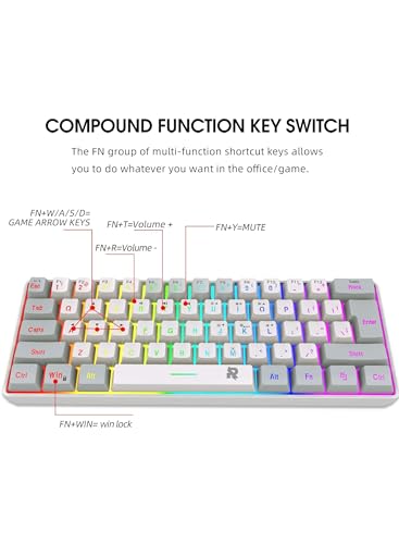 - Classic 60% Compact Design This 60% gaming keyboard has a perfect size and it's good for all environnement, business travel games office home use, without Numpad, more practical for Gamers and Typist, give more space to your desktop.