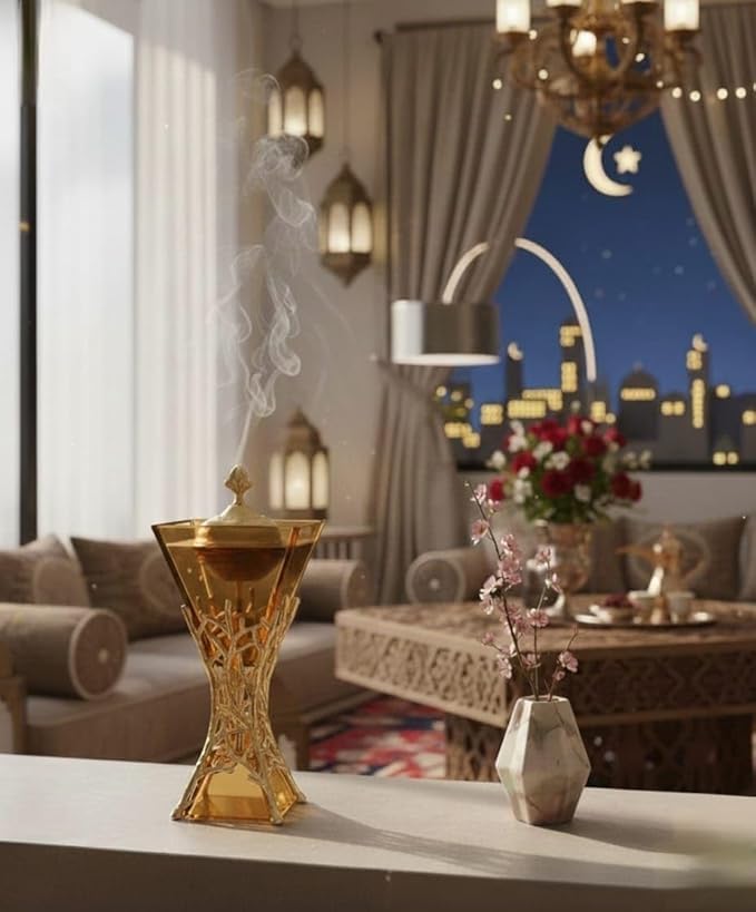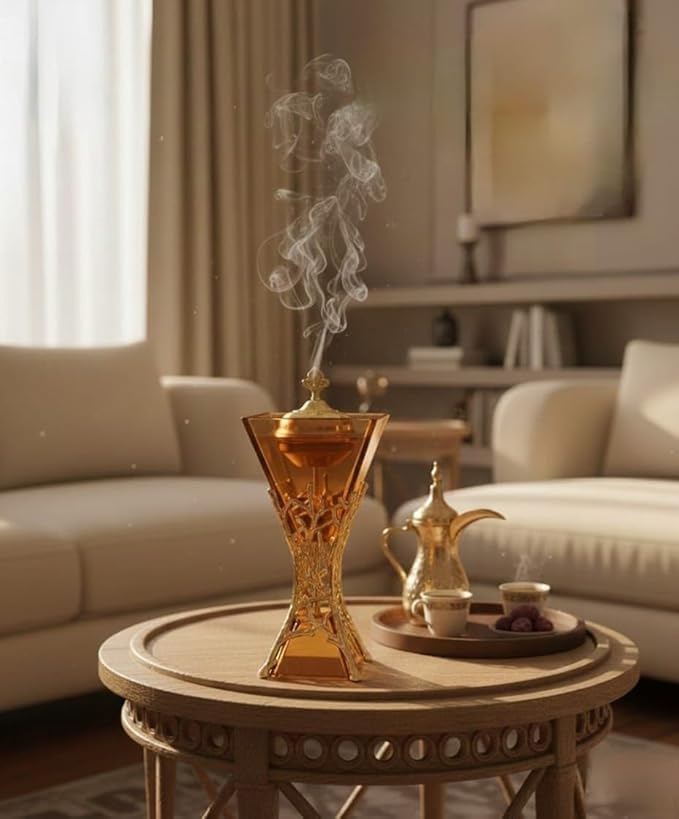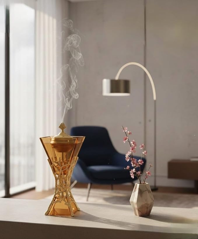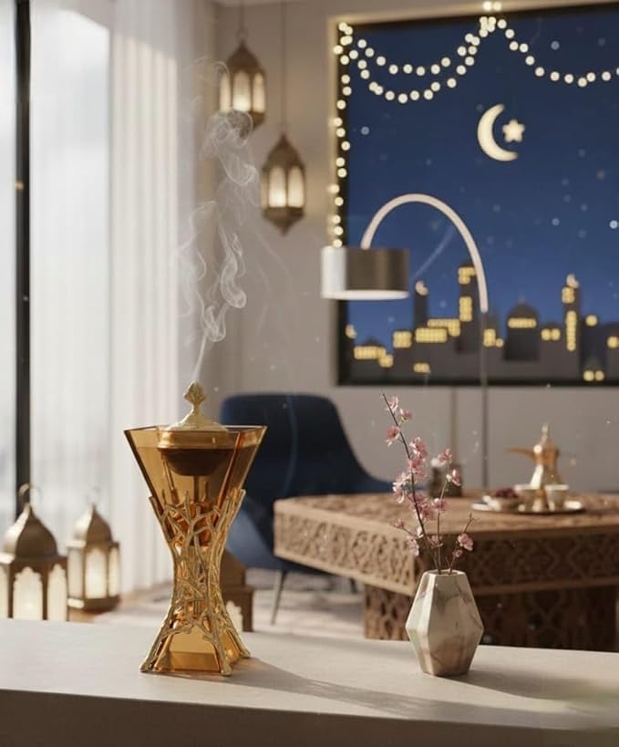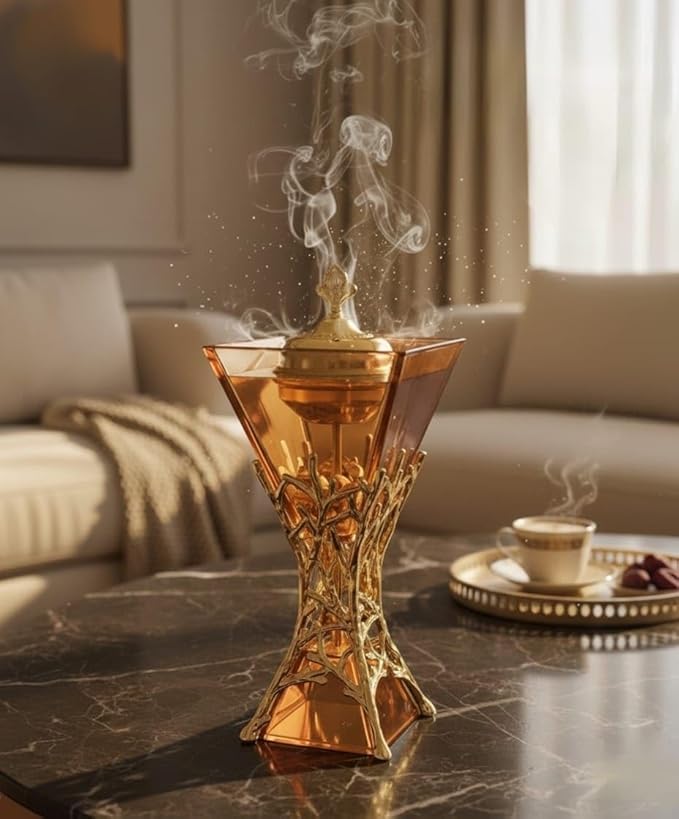Generic - Arabic Heritage Incense Burner Elegant Metal Gold with Stained Glass (Honey) Aromatherapy for Ramadan Mubarak Islamic Party Table Decor for Home Living Room Office