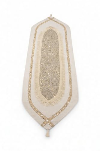 Generic - رانر طاولة كتان عربي بزخارف شرقية للمجالس والسفر بطول 150 سم وعرض 50 سم لمسة فنية راقية تضيف أناقة وتنظيم للطاولة مع سهولة الفرد والطي والتنسيق اليومي
