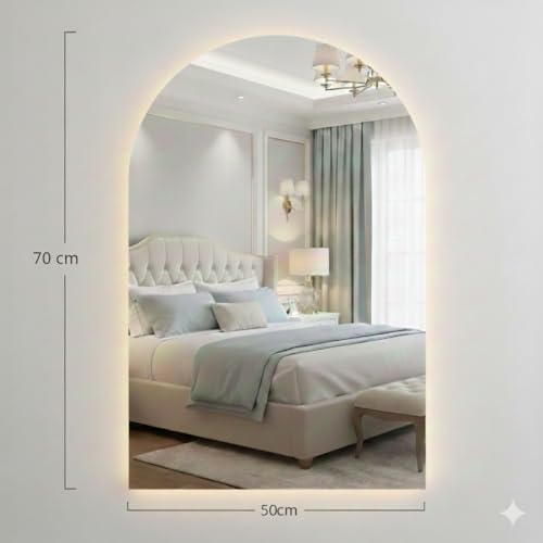 - تصميم مقوس أنيق: عزز ديكور منزلك مع هذه المرآة المقوسة المتطورة مقاس 70 × 50 سم. يضيف التصميم الخالد إحساسًا بالارتفاع والفخامة إلى أي غرفة، مما يجعله قطعة مميزة مثالية للحمامات أو غرف النوم أو المداخل.
