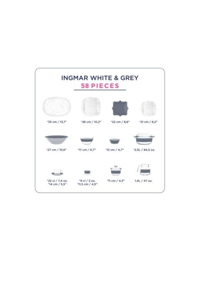 generic - Arcoprex Luminarc Dining Set, 58 Pcs, Ingmar White & Grey