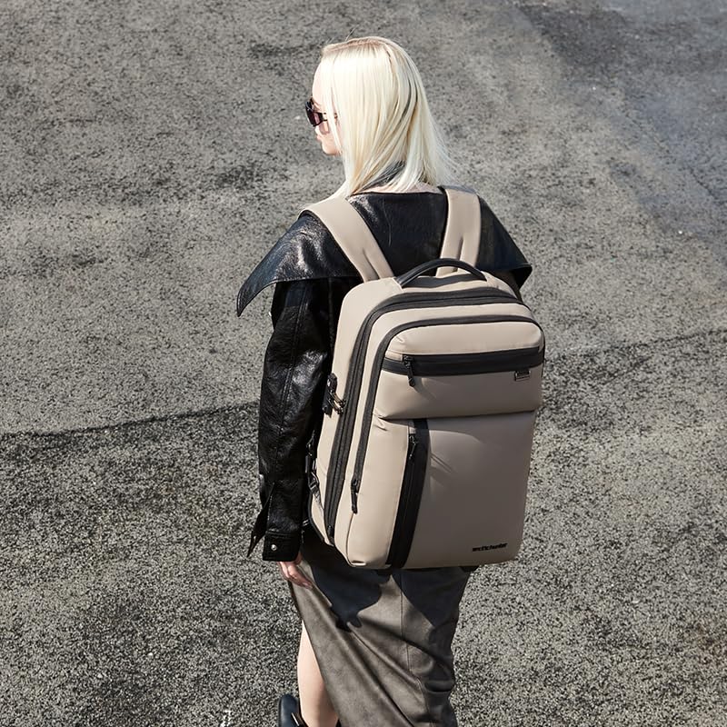 ARCTIC HUNTER AH - Arctic Hunter Professional Rolling Laptop Backpack – Water-Resistant Backpack with 360° Spinner Wheels, Retractable Handle & Multi-Compartment Design for Business, Travel & School – LG00860 Beige