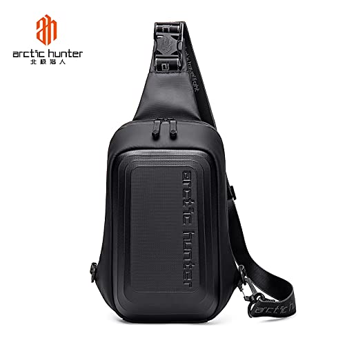 ARCTIC HUNTER AH - شنطة صدر بهيكل صلب مقاوم للماء مع منفذ شحن USB من اركتيك هانتر XB00126 اسود معاصر للنساء