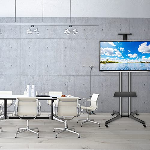 - 【عجلة عالمية 360 درجة】تسمح لك العجلات المرنة بتحريك التلفزيون بسهولة في منزلك أو مكتبك، كما يمكن للعجلات المطاطية حماية الأرضية. يمكن لآلية القفل أن تمنع عربة التلفزيون من الانزلاق فجأة. إنه خيار جيد للمكاتب والمنازل والمدارس وغرف المؤتمرات والمطارات والمستشفيات والمختبرات وما إلى ذلك.
