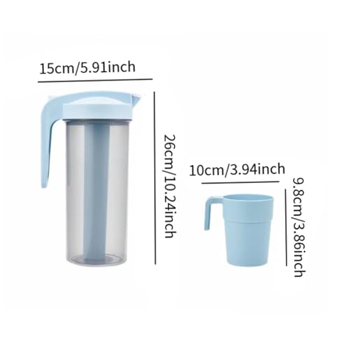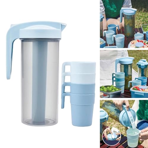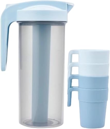 AREXOL - 1200ml Plastic Drink Jug for Hot and Cold Beverages with Cooling Stick and 4 Bonus Cups – Compact Refrigerator Pitcher for Home and Outdoor Use