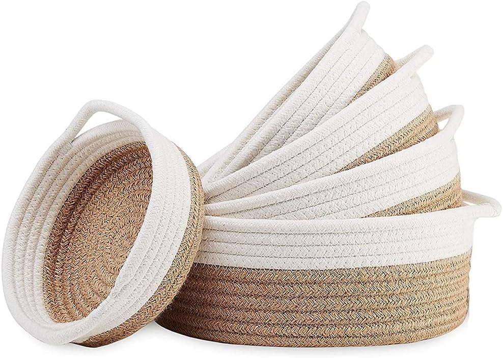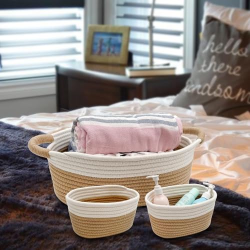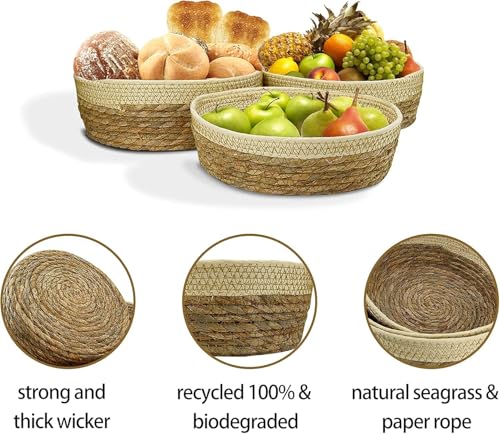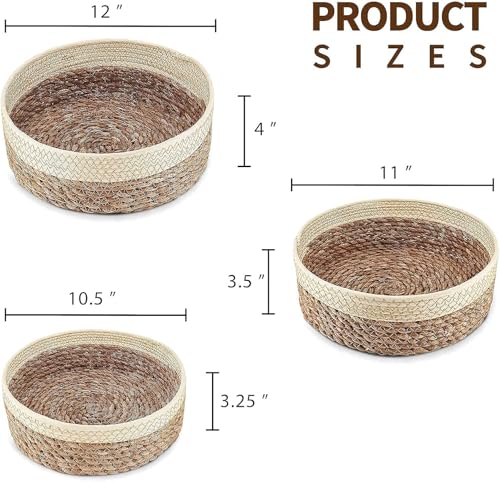 AREXOL - 3 Piece Round Wicker Basket Set in Sizes 20 25 30 cm for Kitchen Bedroom and Bathroom Storage Stylish Natural Organizer for Home Accessories