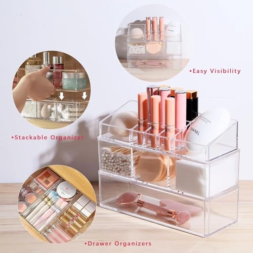 AREXOL - منظم أدراج مكياج أنيق وعملي من الأكريليك الشفاف بثلاثة أرفف وحجم متوسط مناسب لمنتجات التجميل والمجوهرات والإكسسوارات ومقاوم للكسر من اريكسول، متوفر في مصر