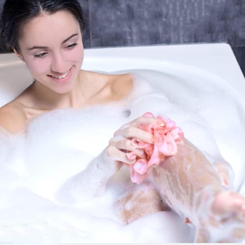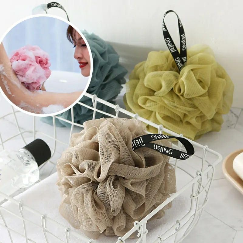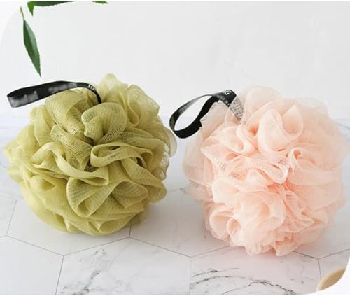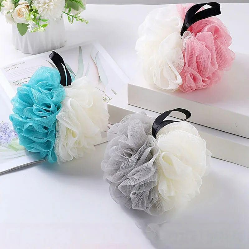 AREXOL - Gentle Shower Loofah Mesh Puff 2 Pack for Family Use Soft and Dense Exfoliating Bath Sponge for Baby and Adults Daily Skin Care