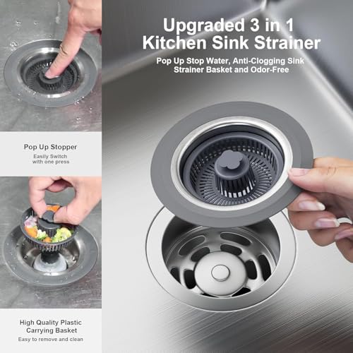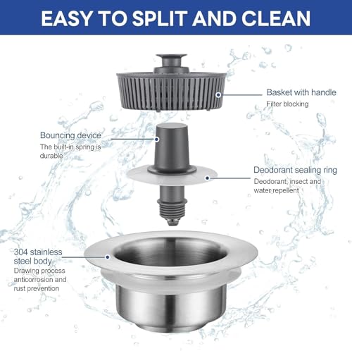 AREXOL - Kitchen Drain Plug with Removable Food Strainer and Open-Close Button – Easy to Clean Sink Filter for Modern Home Use