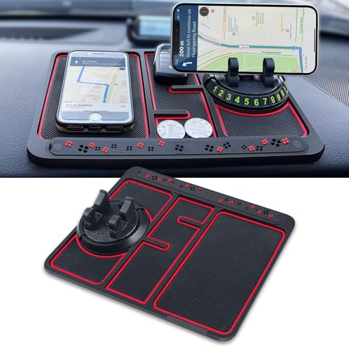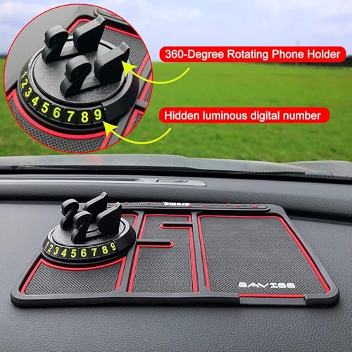 AREXOL - Multi Function Car Phone Holder with Storage 360 Degree Rotating Dashboard Mount for Mobile Sunglasses Keys Coins Fits All Phone Sizes