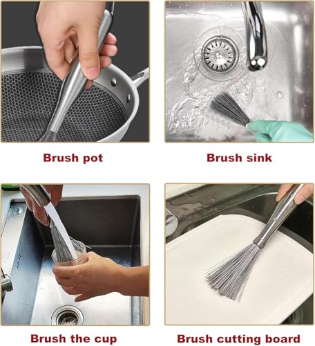 AREXOL - Multi-Surface Cleaning Wire Brush for Stainless Cookware Grills and Pans with Sturdy Grip and Long Life Steel Bristles for Kitchen Use