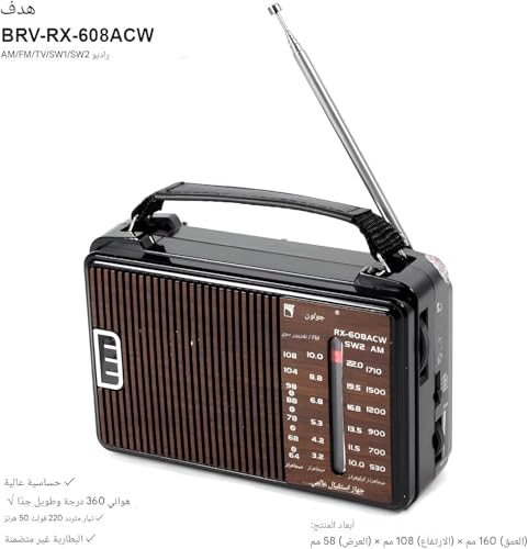 AREXOL - Portable Radio AM/FM/SW/TV, Durable Design, Pure Sound, Electric & Battery Operated, Powerful Reception, Comfortable Carry Handle-Day Quran Radio