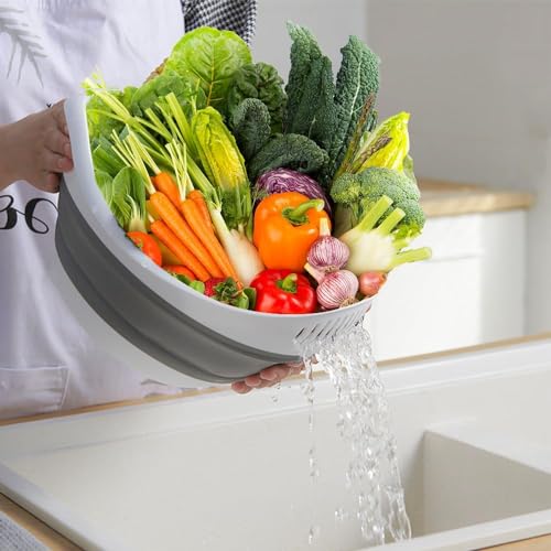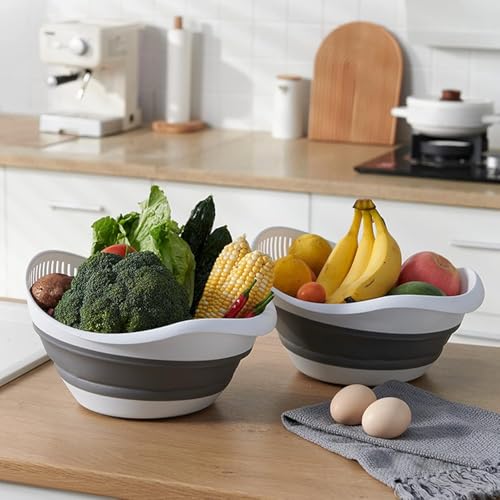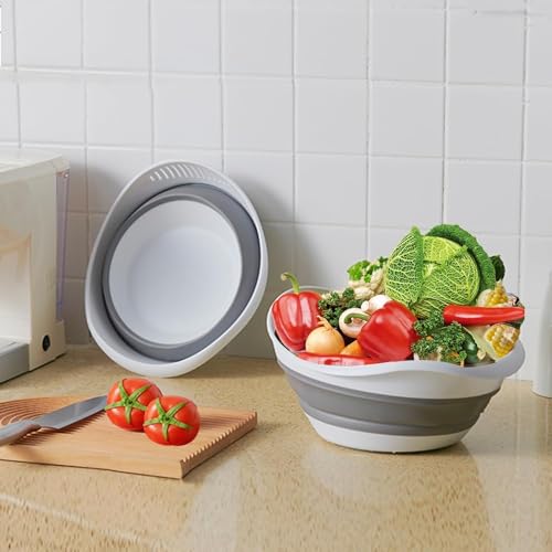 AREXOL - مصفاة سيليكون قابلة للطي سعة 5 لتر للخضروات والفواكه والارز من اريكسول - وعاء غسيل بتصميم قارب قابل للطي مع قاعدة مانعة للانزلاق للمطابخ المنظمة