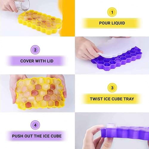 AREXOL - Silicone Ice Cube Tray Honeycomb Shape with 36 Slots and Clear Lid for Ice Jelly Chocolate Safe for Microwave Freezer Dishwasher Use in Egypt