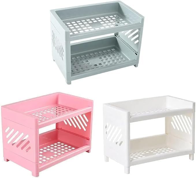 AREXOL - Small 2-Tier Plastic Shelf Organizer for Bathroom and Desk – Modern Storage Rack for Makeup, Skincare, and Daily Essentials (pink, 15 * 24, 4)