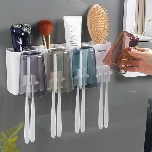 - ✅【Stylish Hygiene Organizer】Designed for neat and organized bathroom spaces, this wall-mounted toothbrush holder with four clear acrylic cups provides individual hygiene storage while eliminating messy countertops and keeping all essentials within easy reach. 🧼