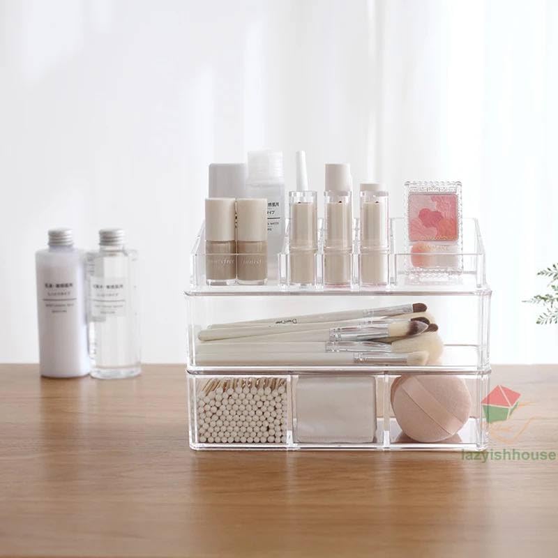 AREXOL - Transparent Acrylic Makeup Storage Box 3 Layer Drawer Style Medium Size Organizer for Cosmetics Accessories Jewelry Shatterproof Clean Design for Egypt