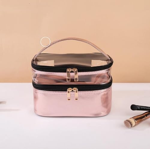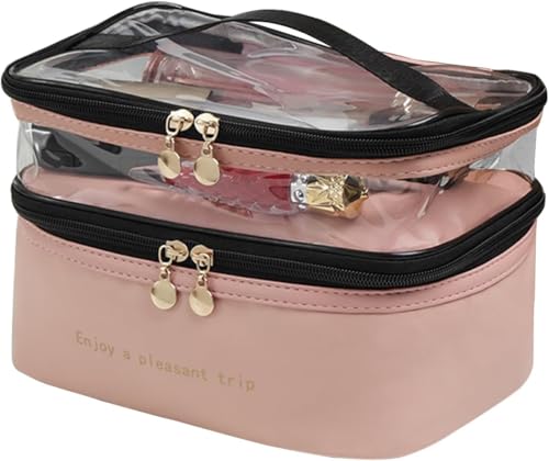 AREXOL - شنطة مكياج جلدية مقاومة للماء 2 في 1 مع مقبض وسحابات مزدوجة لتنظيم مستحضرات التجميل والكريمات والعطور واكسسوارات التجميل للنساء من اريكسول