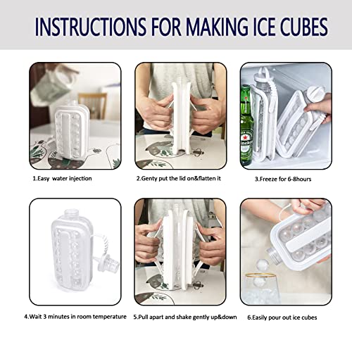 AREYCVK - Ice Cube Tray,2 in 1Ice Ball Maker kettle,Portable Ice Ball Maker,Makes 17 Round Ice Mold for Wine,Whiskey, Hockey,Coffee, Cocktail(White)