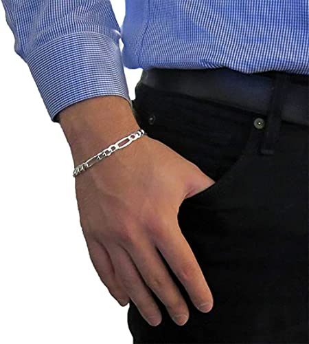 ARGENTO REALE - ARGENTO REALE Men's Metal 925 Sterling Silver Figaro Link Chain (3mm 3.5mm, 4mm, 4.5mm)