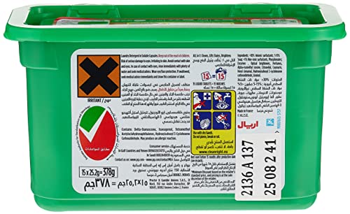 - كبسولات 3 في 1: تنظف وتزيل البقع وتضيء. لم تكن إزالة البقع أسهل من أي وقت مضى! مع كبسولات ايريال 3 في 1، حتى البقع الصعبة لا توجد فرصة.