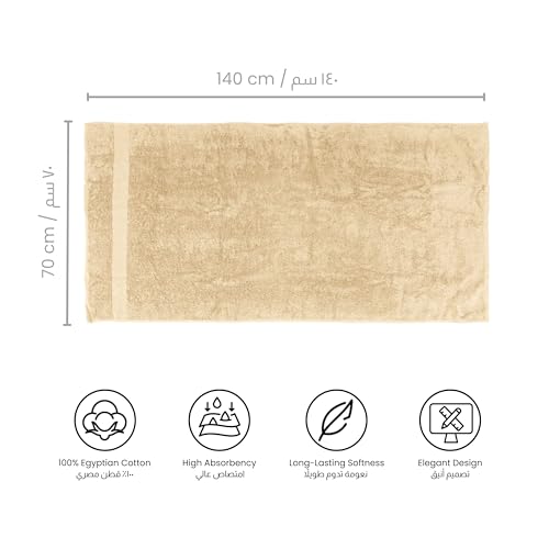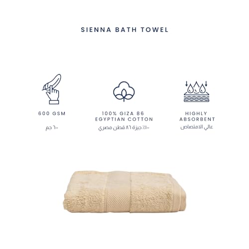 Ariika - فوطة حمام سيينا مصنوعة من القطن المصري جيزة 86 بنسبة 100% مع خيوط غزل مزدوجة مقاومة للشد لتوفير النعومة والمتانة من اريكا، 1.4 م × 70 سم، بيج