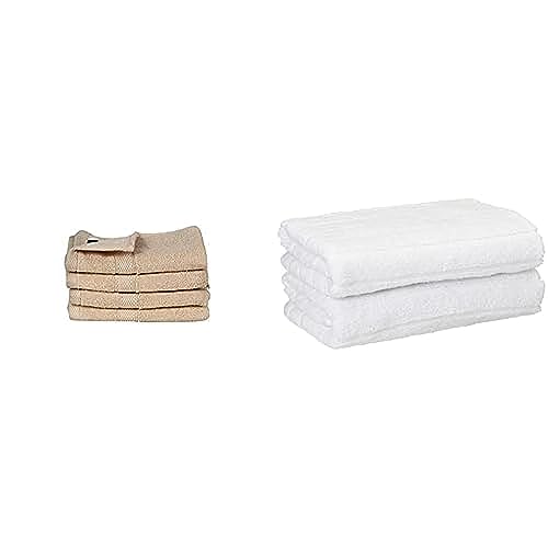 Ariika - مجموعة فوط يد سينا بيج 33×33 سم (4 قطع) مع فوط وجه سينا بيضاء 100×50 سم من قطن الجيزة 86 المصري الفاخر 100% (قطعتين) من أريكا