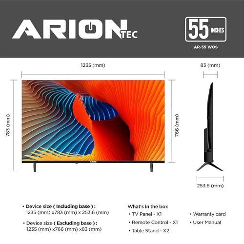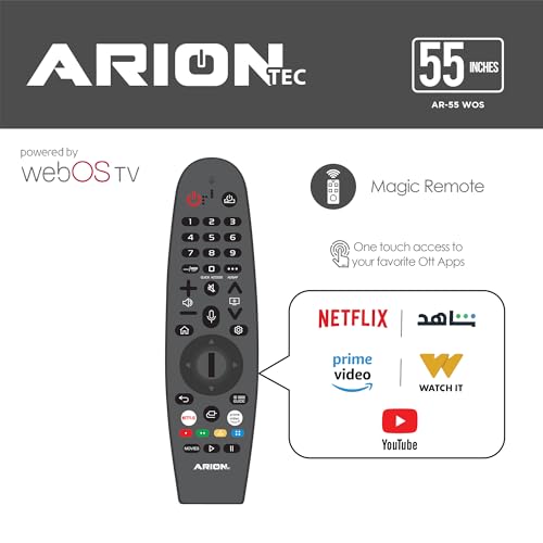 Arion - Arion 55-Inch 4K UHD Smart QLED TV WebOS With Built-in Receiver – ThinQ AI, Dolby Audio, HDR, Frameless Design, Bluetooth, Wi-Fi & Magic Remote Support – AR-55WOS