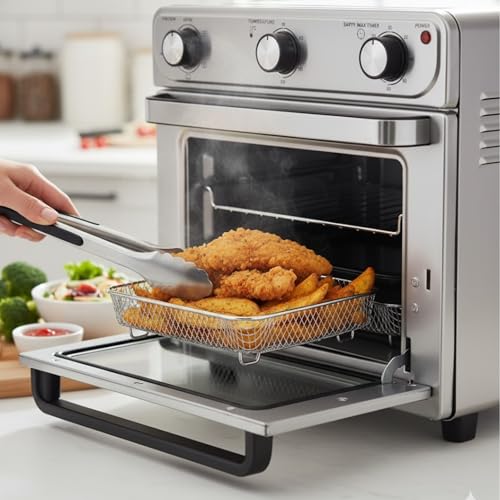 - الملحقات الكاملة: تتضمن صينية خبز ورف سلكي وسلة وصينية فتات الخبز ومجموعة الشواء وملقط.