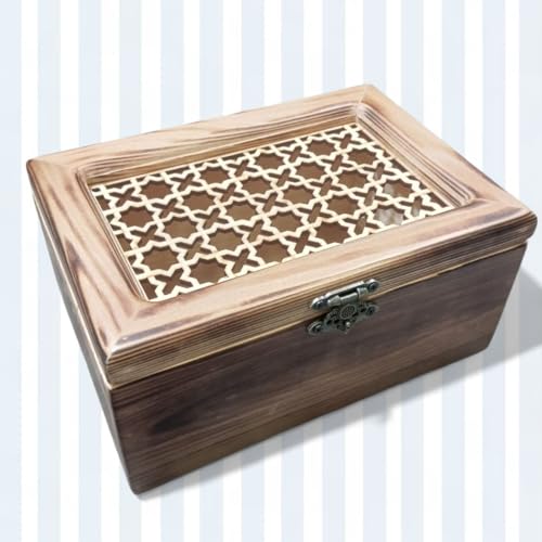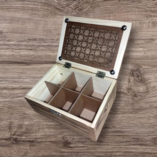 Generic - Arket Nora Tea Box 6 Compartments Tea Box – Natural Wood with Glass Lid and Elegant Laser Engraving (Modern)