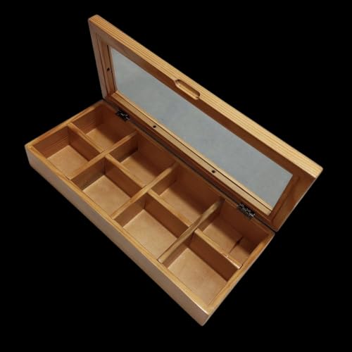 - 100% Natural Peach Pine Wood Grain and Solid Color combination Divided interior suitable for tea or accessories InchesX️ Hand crafted with a soft and precise finish Textured cover keeps the content of dust ================ Suitable for coffee Corners or as an elegant organizer box Ì An elegant gift for people who are organized and natural decoration