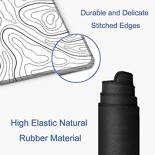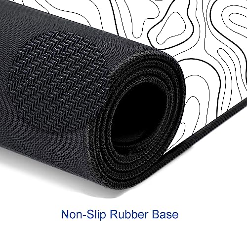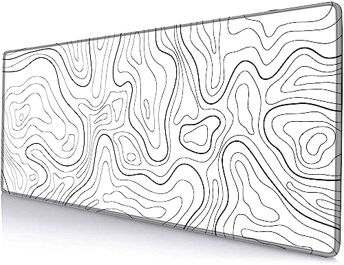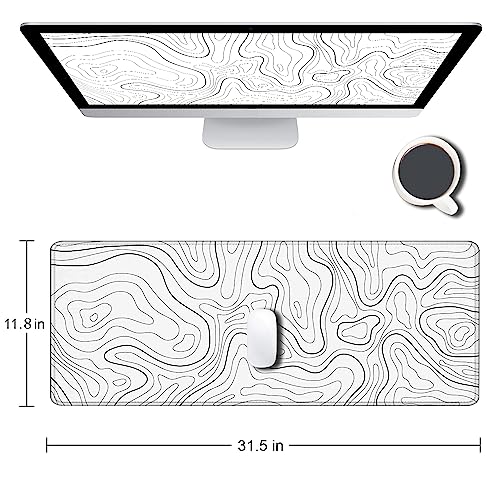 Armanza - Mouse Pad Large, Extended XL Gaming Mousepad, Non-Slip Rubber Base Minimalist Keyboard Mouse Mat Desk Pad for Work, Game, Office, Home, 31.5 x 11.8 in, White Topographic Map Lines