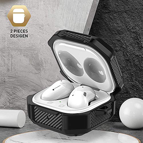 Gmyle - جراب ارمور شديد التحمل متوافق مع سامسونج جالاكسي برو. جراب واقي مقاوم للصدمات لسماعات بودز لايف 2020 من جيميل، بتصميم ثلاثي الابعاد فاخر واقي يدعم الشحن اللاسلكي، اسود، سيليكون