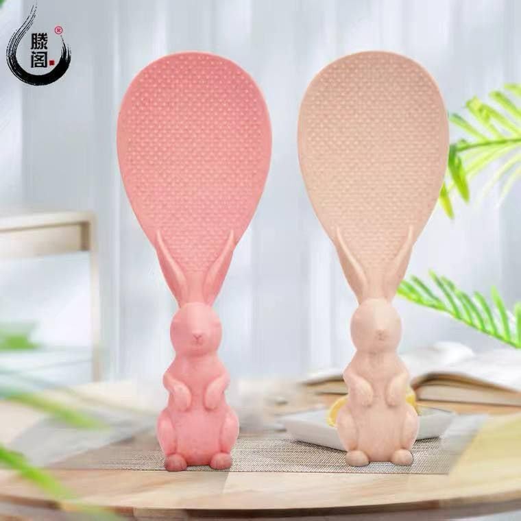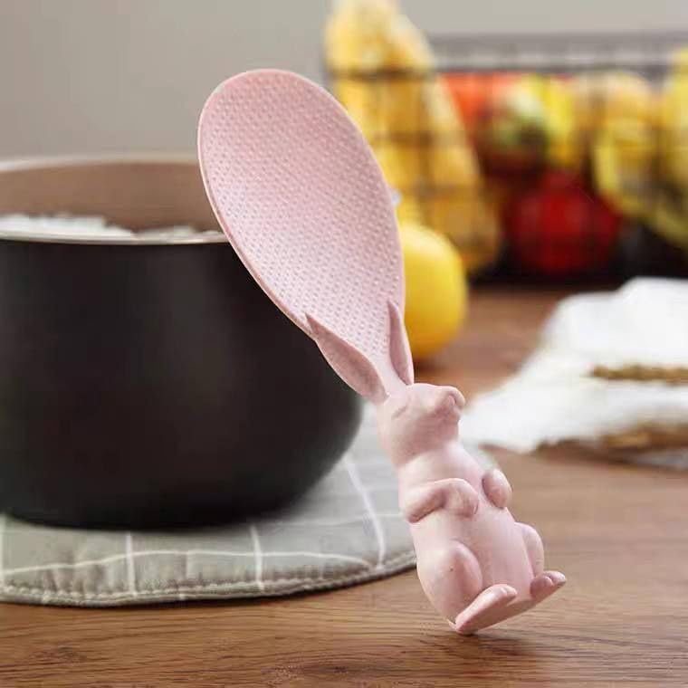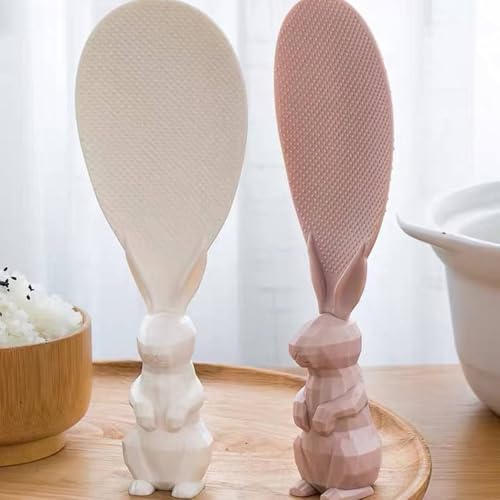 Generic - ملعقة ومغرفة أرز أنيقة بتصميم أرنب قائمة بذاتها ملونة غير لاصقة
