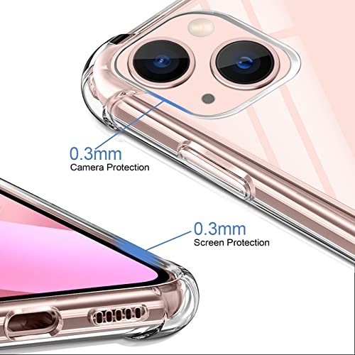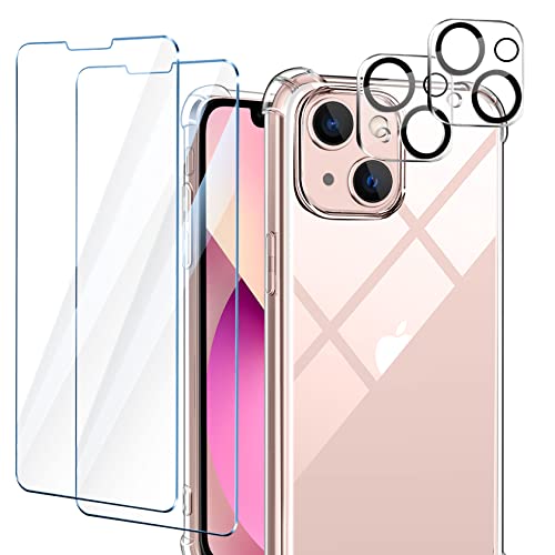 AROYI - جراب AROYI الشفاف متوافق مع iPhone 13 عبوتين واقي شاشة من الزجاج المقوى و 2 عبوة عدسة الكاميرا وغطاء ممتص للصدمات السيليكون الناعم المصنوع مادة TPU شفاف - أخضر