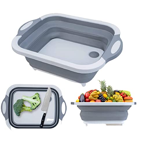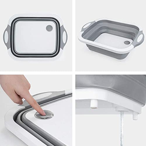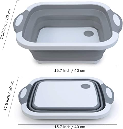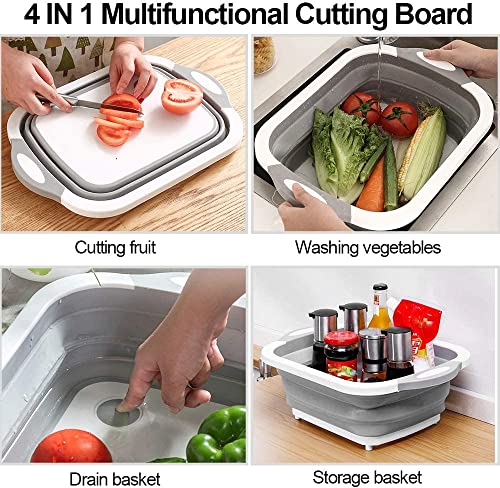 ARQIVO - لوح تقطيع متعدد الوظائف يوضع فوق الحوض من اركيفو، لوح تقطيع قابل للطي مع حوض أطباق قابل للطي، طبق غسيل محمول 3 في 1 بتصميم لوح تقطيع من البلاستيك والآمن غذائيا للمطبخ والمنزل، لون أبيض - رمادي