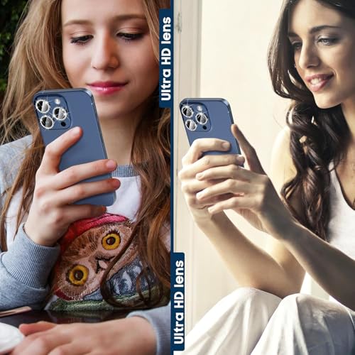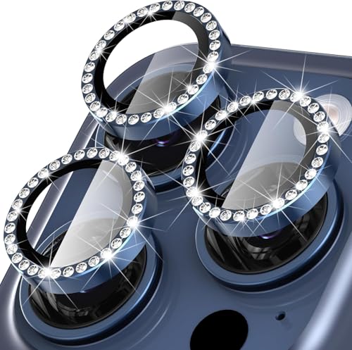 ARROWS - واقي عدسة الكاميرا متوافق مع آيفون 14/24 بلس و15/15 بلس، مصنوع من زجاج مقوى ماسي عالي الدقة HD مع حلقة من الألومنيوم، واقي لحماية الكاميرا مقاوم للخدش ومضاد للبصمات من اروز، أزرق